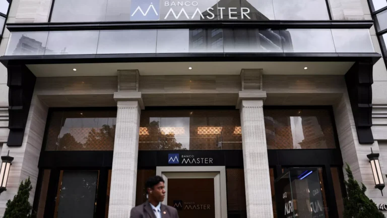Segurança do lado de fora do Banco Master, após a prisão do acionista controlador do banco, Daniel Vorcaro, em São Paulo – 18 de novembro de 2025 (Foto: REUTERS/ Amanda Perobelli)