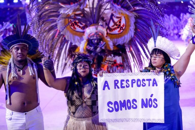 “Lamento de raça”, um clássico em forma de profecia do compositor do Garantido Emerson Maia, descreveu o drama assim, em 1997, e voltou à arena na apresentação deste ano: “O meu pé de sapopema, minha infância virou lenha. Lá se vai a saracura correndo dessa quentura. Lá se vai onça-pintada fugindo dessa queimada. Meu rio secou, pra onde vou?”.
