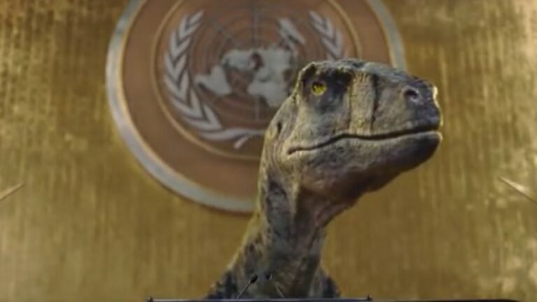 Gerado por um programa de computador e dublado pelo famoso ator Jack Black, o Dino usou seus dois minutos na ONU para alertar a nós, seres humanos, sobre os riscos de extinção da nossa própria espécie, sobretudo pelo uso dos combustíveis fósseis, um dos principais temas discutidos na COP26.