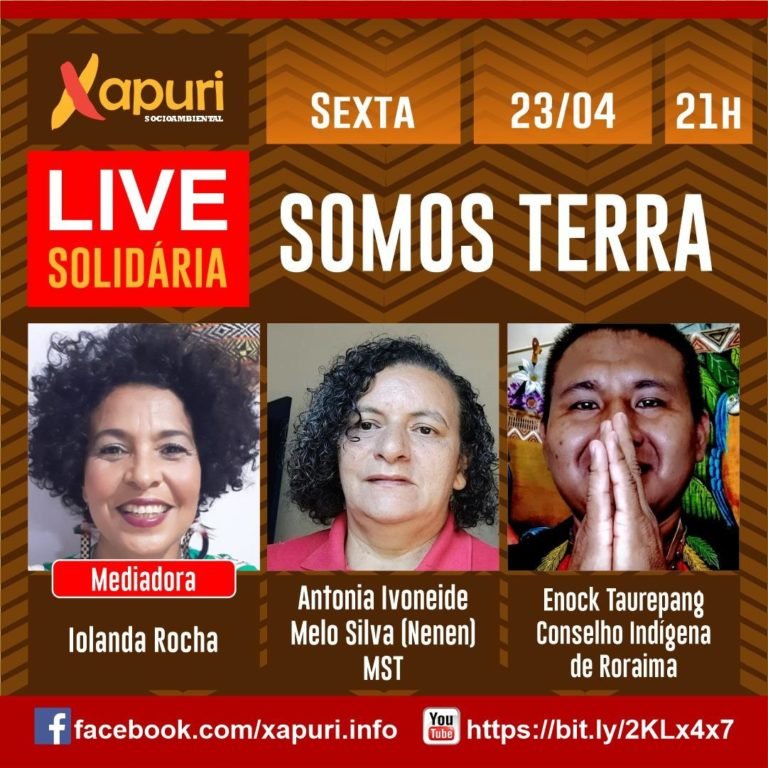 ❤️ Live Solidária – Somos Terra – Somos Terra, Somos Vida: Mediada por Iolanda Rocha, esta Live Solidária faz o necessário diálogo da Resistência com Antonia Ivoneide Melo Silva, a Neném do MST e com o líder indígena Enock Taurepang, do Conselho Indígena de Roraima. Vale a pena conferir.