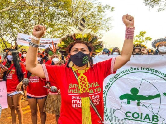 Junto às milhares de mulheres da Amazônia estava Nara Baré, exemplo e inspiração para muitas ali presentes. “Estamos aqui para reafirmar que a Amazônia é vida, [que] a Amazônia somos nós, povos originários dessa terra. Seguimos na luta juntas!”, disse à Rede de Comunicadores da Coiab (Coordenação das Organizações Indígenas da Amazônia Brasileira).